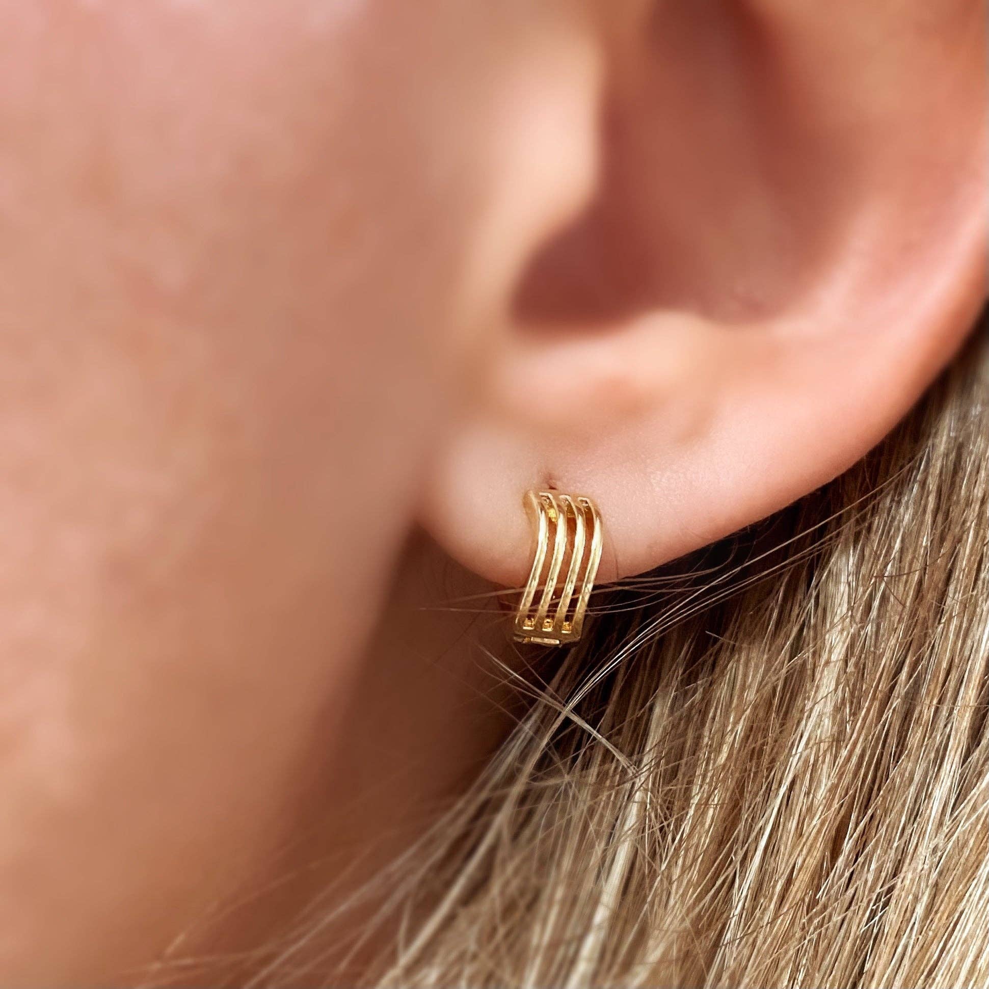 18k Gold Filled Tiny Waves Clicker Hoop Earrings